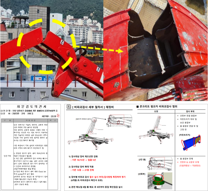 펌프가(건설기계) 붐대 파단 안전 대책 자문 사례